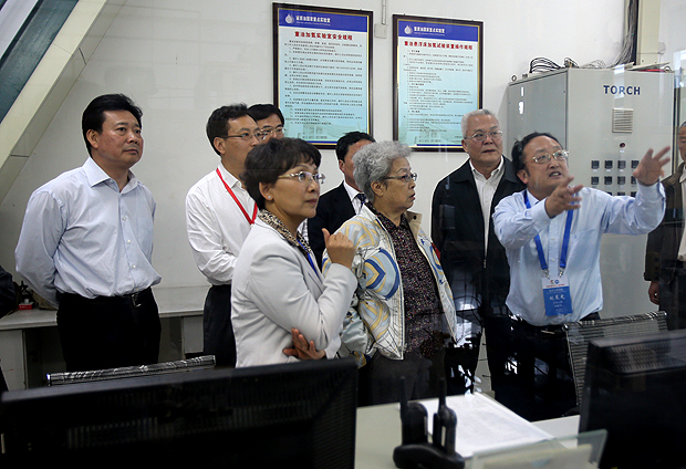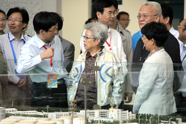 10月4日,参加母校60周年校庆活动的吴仪员工参观了学校实验室和校园。中国石油天然气集团公司董事长、党组书记周吉平,山东省委常委、青岛市委书记李群,学校领导等陪同参观。