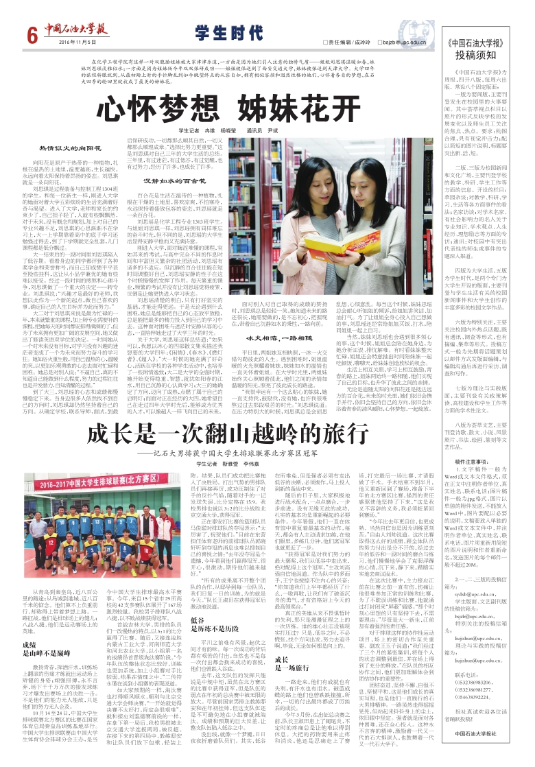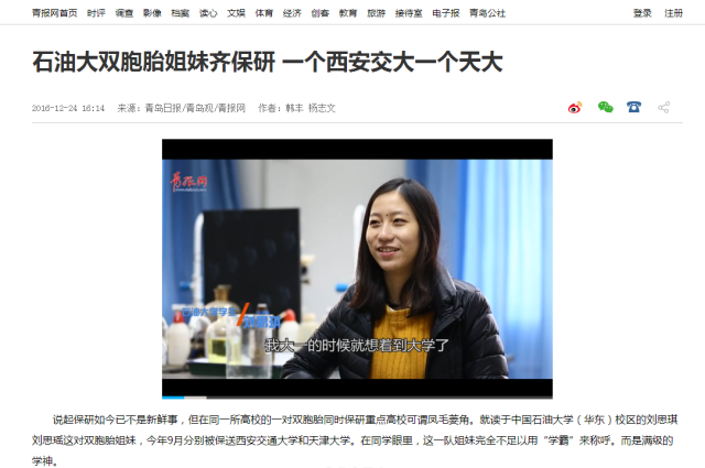 在化学工程学院有这样一对双胞胎姐妹被大家津津乐道,一方面是因为她们引人注意的独特气质——姐姐刘思琪温暖如春,妹妹刘思瑶淡雅似水;一方面是因为姐妹倆今年双双保研成功——姐姐被保送到了西安交通大学,妹妹被保送到天津大学。大学四年的旅程转眼就走到了尽头,从最初踏上时的手忙脚乱到如今眺望终点的从容自如,拥有相似容颜和迥然性格的她们,心怀着各自的梦想,在石大四季的轮回里绽放成了最美的姊妹花。
