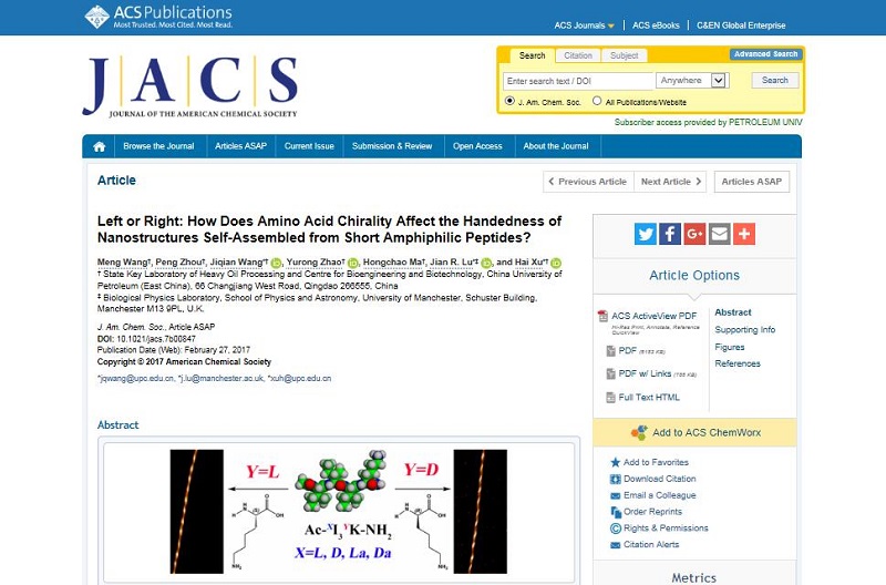 《美国化学会志》(JACS)由美国化学会创办于1879年,至今已拥有130多年历史,是全球化学领域最权威的学术杂志之一,代表着世界化学界前沿和权威的学术观点,其独有的学术地位和学术价值被化学领域人士广为关注,其最新影响因子为13.038。