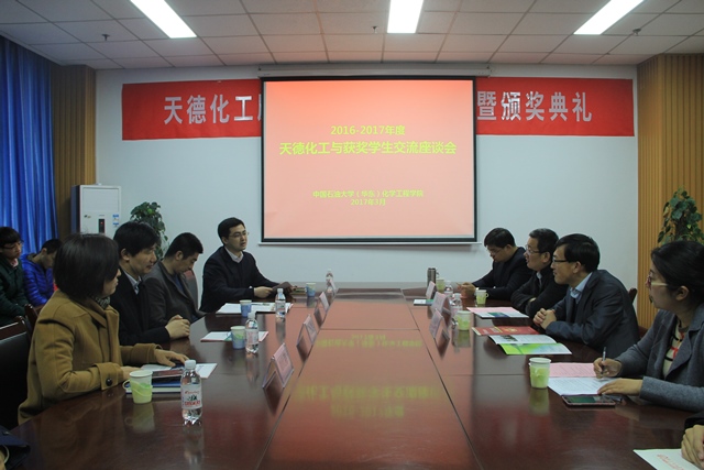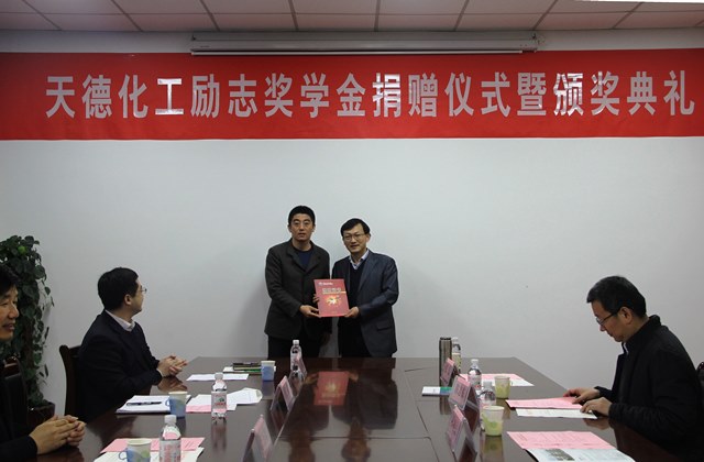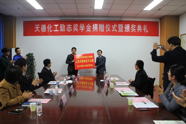 3月29日上午,化工学院在工科楼A座119会议室举行天德化工励志奖学金捐赠仪式暨颁奖典礼。天德化工控股有限公司董事、总工程师孙振民,副总经理陈志东,经营部经理张磊,威廉希尔官网党委员工工作部副部长张万春,合作发展处副处长张炜,学院副经理刘欣梅教授和威廉希尔官网党委副书记王迅出席仪式,本年度全体获评励志奖学金的员工参加。