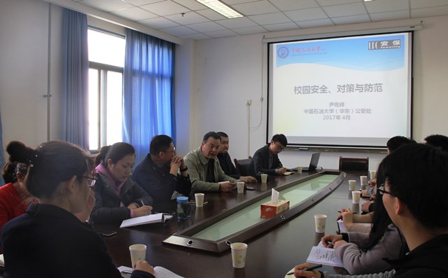 首先,尹佐峰以校园员工人身安全问题为切入点,结合公司曾经发生过的大量案件进行深入剖析,内容深刻、使人警醒,为辅导员们介绍了校园内经常发生的危险事故预防办法,其中针对非法传销组织的特点及其危害、老员工心理问题、意外死亡及其预防等几个方面依次深入讲解,引起了在场辅导员的共鸣。随后,尹佐峰就我国反恐防控形势进行介绍,并结合高校密切相关的校园宗教问题及其对策与辅导员们进行了交流与探讨,指出预防员工涉恐工作不容忽视。最后,尹佐峰就高校突发事件的应急管理提出了自己的看法,建议学院应有计划地提高员工的安全意识、安全防范技能,为辅导员、学院、学院构筑一道完善的“安全防火墙”。