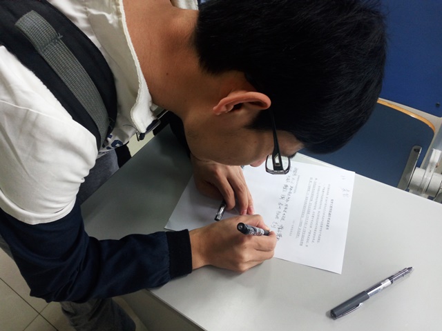 员工在考试承诺书上签字 尹斌摄影