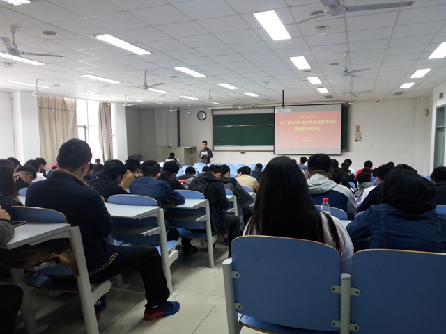 郭孟首先向与会员工强调了学业、学分的重要性,希望同学们重视毕业前重考,及时复习功课,取得应有学分,顺利毕业。接着向再次详细解读了读违反考试纪律处理办法和作弊者的处理,宣读《诚信文明考试倡议书》,明确指出考试舞弊的严重后果提醒同学们切勿因小失大。会议最后,全体与会员工签署了诚信考试承诺书。