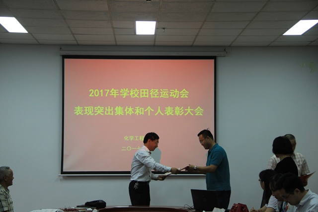 6月9日下午,化学工程学院在工科楼A座院报告厅召开2017年学校田径运动会表彰大会,对学院在本届运动会上表现突出的集体和个人进行表彰。会议由学院工会主席张秀霞主持,威廉希尔官网党委书记冯宝鹏、党委副书记王迅、各系(室、中心)党支部书记以及教职工运动员代表参加了会议。