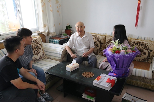 员工们看望离休党员周明伦老师 全运摄影