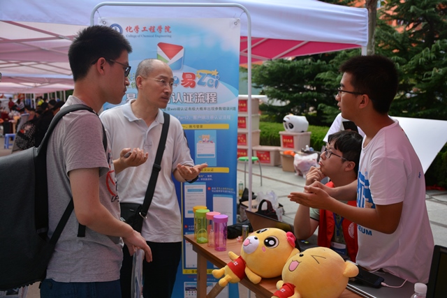 公司以“新Zn相印,易路Cu行”为主题,将新生比喻为“Zn元素”,通过极具化院特色的整体设计表达学院对“新元素”的热烈欢迎。一条由“H”到“Zn”三十个元素循环组成的元素之路,从风华路老员工活动中心铺到了华东路化学工程学院迎新点,五彩缤纷的元素符号指引着初来乍到的化院新生到达学院迎新大本营报道、注册;元素旁边依次贴有1953年建院至今的学院发展重要时间节点,让新生们在穿越学院64年发展历程的同时,铭记历史,继续前行;以易班和化院之蕴为主体的手印墙,让新生们留下大学时光的第一份美好印记;历时两年精心制作的学院宣传片,让驻足观看的众多新生和家长,进一步了解了学院的发展历程和广阔前景;学院杰出员工代表展示板,让新生们在受到熏陶的同时,也看到了光明的未来;贴心的家长休息区位于迎新点对面,精心准备的信封里除了家长会邀请函,还有两张信纸供家长们给孩子写一封家书,这不仅让家长感受到学院的贴心服务,也提供了一个机会让家长向孩子袒露心声;工科楼A座楼下的优秀毕业生寄语以及优秀员工、班集体的介绍,让新生们看到了“近在眼前”的优秀典型。