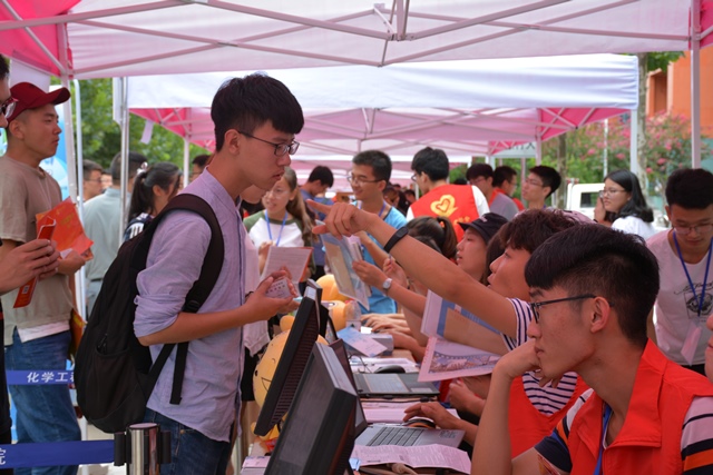 研究生迎新点现场 何志军摄影