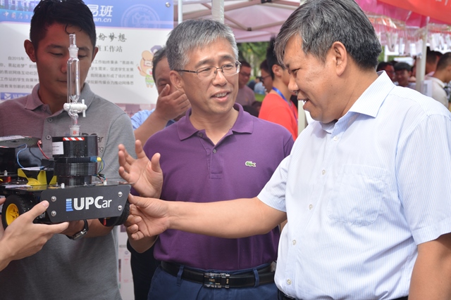 郝芳董事长了解化学能小车相关情况 李博一摄影