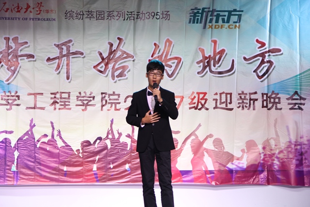 本次晚会应邀出席的还有化院10级优秀毕业生刘煜,谈到对学弟学妹们的寄语时,他说:“老员工活很丰富多彩,希望同学们一定重视学习,多结交新朋友,培养丰富的兴趣爱好,保持健康的体魄,做一名出彩的石大人。”
