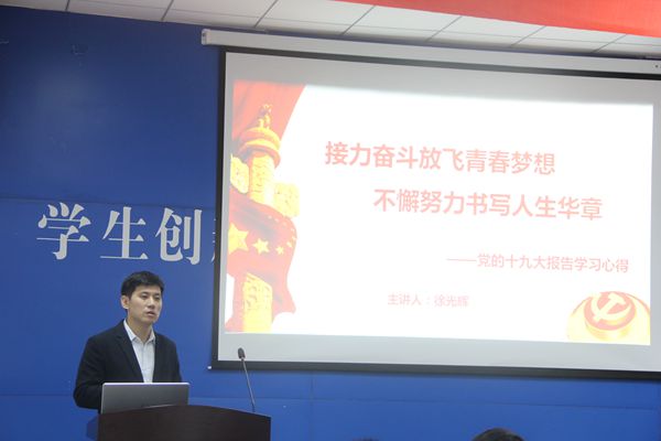 10月28日,化学工程学院于老员工活动中心二楼学术报告厅开展了“接力奋斗放飞青春梦想,不懈努力书写人生华章”——党的十九大报告学习心得主题讲座。本次讲座由化工学院团委书记徐光辉主讲,化工学院全体班长、团支书参与此次讲座。