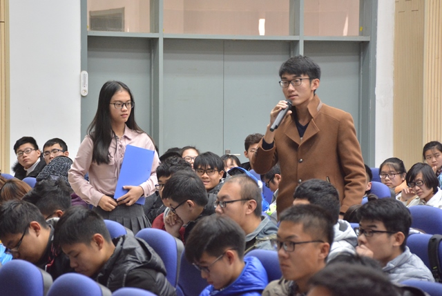 在现场提问环节,宋海儆与同学们交流了中西部地区国家优质高等教育资源短缺、青少年应当以何种方式传播正能量等问题。