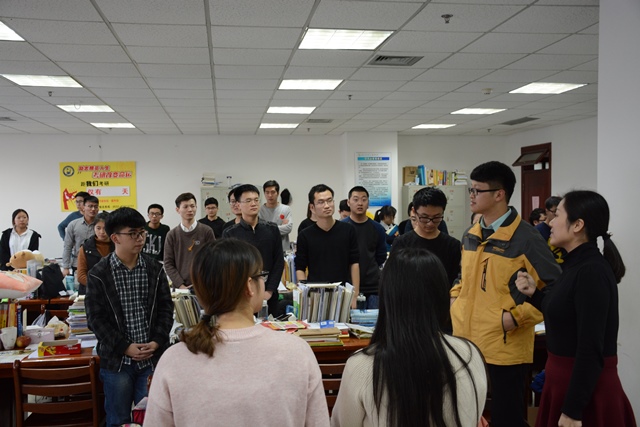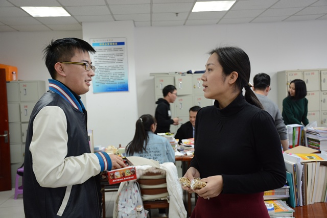 12月8日下午,在全国硕士研究生入学考试即将来临之际,学院2018届毕业班辅导员杨一帆、刘伟前往看望正在备战的考研员工,对正在努力复习积极迎考的员工致以深切的问候并送上精心制作的小礼物及营养品。