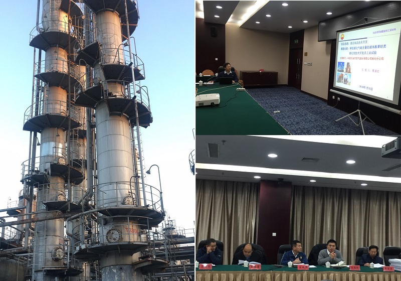 降低液化气硫含量的液体酞菁钴类催化剂技术工业试验的装置(左图)和验收评估现场(右图)