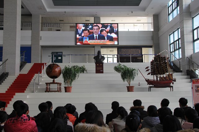 公司师生观看十三届全国人大一次会议开幕会 魏孟吉摄影