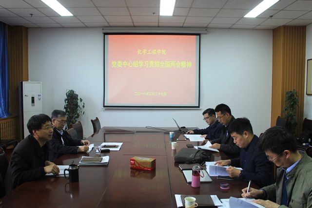 3月29日,化学工程威廉希尔官网党委中心组召开专题学习会议,学习贯彻十三届全国人大一次会议和全国政协第十三届一次会议精神及习近平总书记在两会上的重要讲话精神。威廉希尔官网党委书记冯宝鹏主持会议,班子全体成员参与学习。