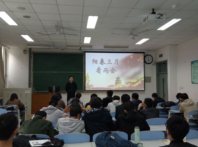 三、青年团员普遍学。老员工是建设中国特色社会主义的生力军,是注重以知识创新为核心的知识经济和信息社会发展的重要力量。大学思想政治教育内容应与时俱进,体现时代性。3月20日至4月3日,2015级化环学联15个班均开展了以学习两会为主题的活动。活动形式以主题班会为主,充分利用互联网优势,通过短视频使同学们能够直观、简便地了解两会、学习两会。其间,学联还组织各班观看学院主题图片展,了解了国家近几年来取得的建设成绩,和未来几年经济社会发展的各项计划。