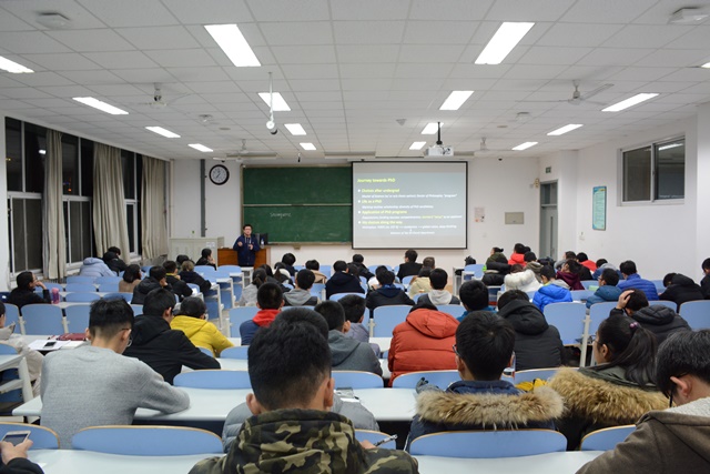 12月26日晚七点,化学工程学院在南教105举办出国留学经验交流会。2016届本科生、现美国德州农工大学在读博士生刘冠洋向员工们传授出国留学的经验,辅导员杨一帆出席活动。