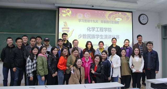 为深入贯彻党的十九大精神和习近平总书记系列讲话重要内容,落实国家各项政策方针,促进民族团结,4月15日化学工程学院举行主题为“学习贯彻十九大,青春践行正当时”的少数民族员工演讲比赛。党委员工工作部米娜瓦尔老师,新疆内派教师曙光老师、阿里木老师,少数民族员工专职辅导员古其娜,化工学院辅导员薛慧、魏孟吉、陈兆辉、孔德辉作为评委出席比赛,学院共70多名少数民族员工参与演讲,比赛分为两个会场同时进行,第一会场为17级和14级少数民族员工,第二会场为15级、16级少数民族员工。