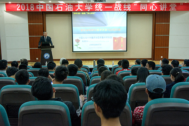 5月10日,民盟盟员、化学工程学院肖家治教授走进2018年统一战线“同心讲堂”,为师生讲授“重质油轻质化技术开发与过程回顾”。报告会由校民盟委员会主委周瑶琪教授主持。