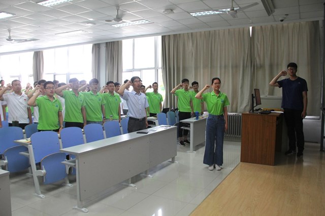出征仪式最后,全体毕业生党员重温入党誓词,牢记入党初心,铭记党员的理想信念,努力践行党员承诺;随后,全体毕业生党员在决心书上写下自己的承诺。出征仪式结束后,刘伟带领全体党员观看廉洁从业教育片。