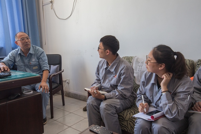 座谈过程中,肖书记首先介绍了动力车间党支部建设工作与企业党员培养发展的基本情况。接着就党建工作需与企业安全生产齐头并进做出详细阐述,做好基层党建工作是为安全生产而服务,安全生产又是党建工作成效的体现。在企业,党支部要随时了解职工群众的思想状况,做好正确的思想引领工作,保证职工队伍的稳定。其次,要权衡好个人、家庭以及生产之间的关系,做到先大家后个人,以人为本。