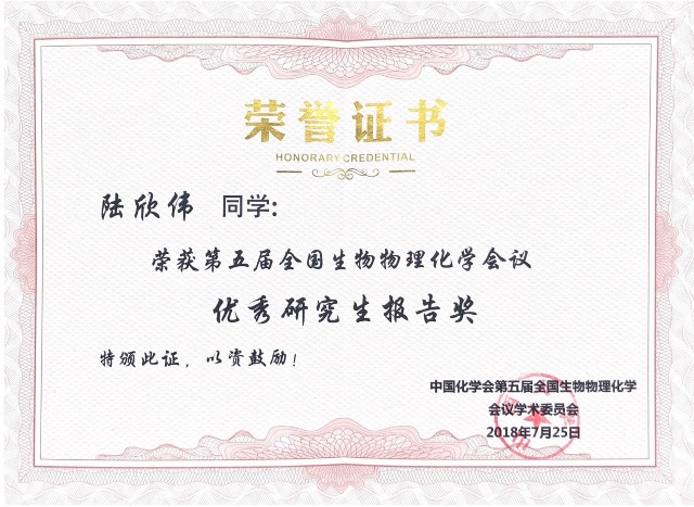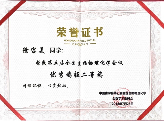 其中山西大学承办的“第五届全国生物物理化学会议主题包括生命现象的物理化学机制、物理化学在生命科学中的应用、生物物理化学新技术和新方法。中心研究生陆欣伟同学获得了优秀研究生报告奖,刘真真、徐宝美获得了优秀墙报奖。在由中科院过程工程研究所承办的主题为“Peptide Self-assembly: Biology, Chemistry, Materials and Engineering”的国际学术研讨会中师生们做了多场口头报告和墙报,宗城同学获得优秀墙报奖。