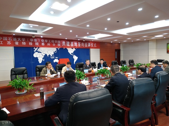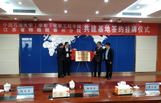 10月26日下午,“威廉希尔体育(华东)-江苏省特种设备安全监督检验研究院泰州分院特殊设备安全监测与防护技术创新实验基地和研究生联合培养基地”(以下简称创新联合培养基地)签约及揭牌仪式在江苏省泰州市举行。经理杨朝合、副经理蒋文春、泰州市质监局副局长王建春、江苏省特检院泰州分院经理王家文等出席仪式。