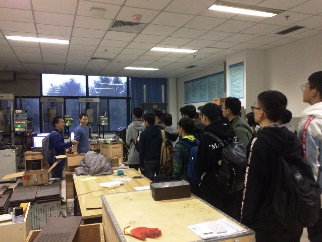 座谈会结束后,左老师带领大家参观了工科楼A座、E座的展板和部分科研、教学实验室,向大家介绍了装控系主要的科研方向,希望同学们能够走入实验室,培养研究兴趣,锻炼动手能力。