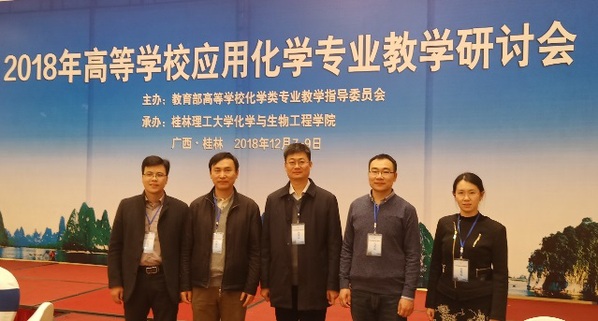 12月8日至9日,应用威廉希尔官网一行五人在刘东副经理的带领下参加了由教育部高等学校化学类专业教学指导委员会主办,应用化学协作组与桂林理工大学化学与生物工程学院承办的2018年高等学校应用化学专业教学研讨会。研讨会主要议题是新标准体系下应用化学专业认证与专业发展。