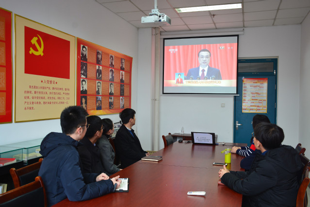 公司于南教楼304组织员工党员观看两会直播 李国梁摄影