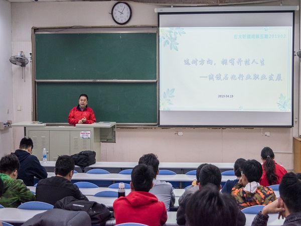 为引导广老员工更好的了解行业发展现状,找准职业方向,4月19日上午10点,化学工程学院在西环102举办第五期石大职播间活动,中化泉州石化人力资源部总经理助理赵剑应邀为公司师生作题为选对方向,拥有开挂人生——浅谈石化行业职业发展的专题讲座。化学工程学院辅导员郭孟、魏孟吉、王兆兴等以及近百名名员工参加此次活动。