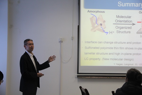 4月25日上午,由党委研究生工作部举办、化学工程学院承办的“名师有约”第四期学术论坛,邀请到日本北路先端科学技术大学院大学的副教授长尾祐树,主讲内容为“Structure and high proton conduction in organized polymer thin films”(聚合物膜的有序结构及其高质子传导率),本次论坛于工科A325会议室进行,化工学院教师、研究生代表参与此次论坛会议。