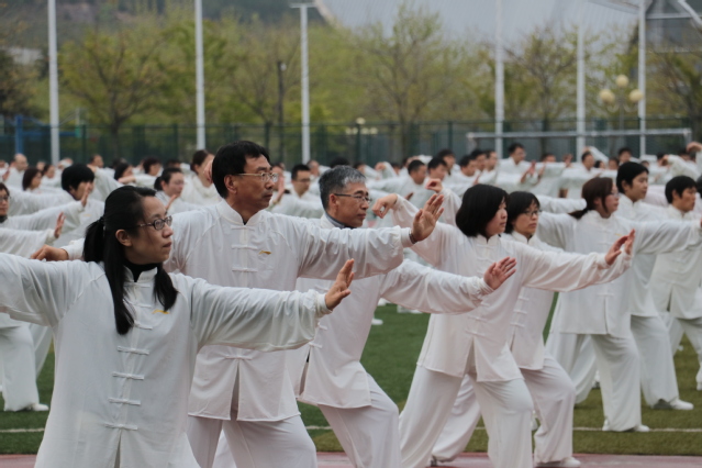太极拳团体演练,已被公司列为教职工群体活动的重要项目,确定逐步推广普及,使之成为教职工终身受益的健身运动技能。公司从去年11月开始选派人员参加校工会组织的太极拳专业学习培训,按照“教练带骨干、骨干带队员”的训练模式进行组织。今年元月份寒假期间,学院邀请校体育教学部专业教师郭荣福,针对练习积极分子进行专项技术指导和强化训练,力求精准掌握太极拳的“神意形”,做到“身形身法、手形手法、步形步法”合乎规范,有利于进一步的教和学。春季开学以后,学院工会制定太极拳教学计划,抽出专门时间,组织集体练习。利用一个月时间,每天上午十点,工会主席杜峰老师适时督促和提醒,要求大家克服困难,在繁忙的教学科研工作间隙,既是要认真准备学校太极拳的展演,也是让大家有机会利用太极拳的运动优势,活动筋骨,锻炼身体,调理身心。在此期间,学院书记和经理身体力行、率先垂范。工会组织优秀教练员张秀英及张云波等老师和长期采用太极拳健身的老教师如郑经堂教授,进行技术指导力求动作到位、套路准确,身心调和。学院教师积极参与,不但规定时间尽量到场,业余时间相互切磋交流,自觉将其当做为集体荣誉而练习,为活跃化院气氛而聚会。这些有力的措施保证了太极拳的学习,并最终在学校的太极拳展演活动中取得一等奖的优异成绩。