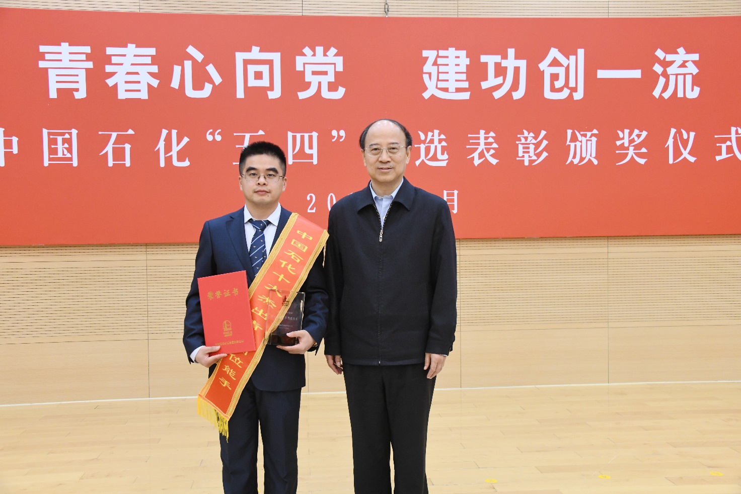 4月29日,中国石化集团公司举行了“五四”表彰颁奖仪式,公司博士生陆诗建同志荣获2017-2018年度“中国石化十大杰出青年岗位能手”荣誉称号。