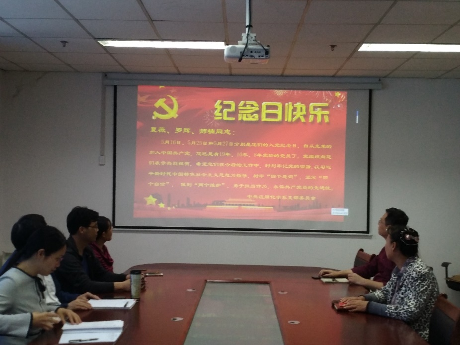 “我志愿加入中国共产党,拥护党的纲领,遵守党的章程,履行党员义务……”5月15日,应用威廉希尔官网党支部开展了“入党纪念日”活动,为五月份入党的三位同志过“政治生日”。