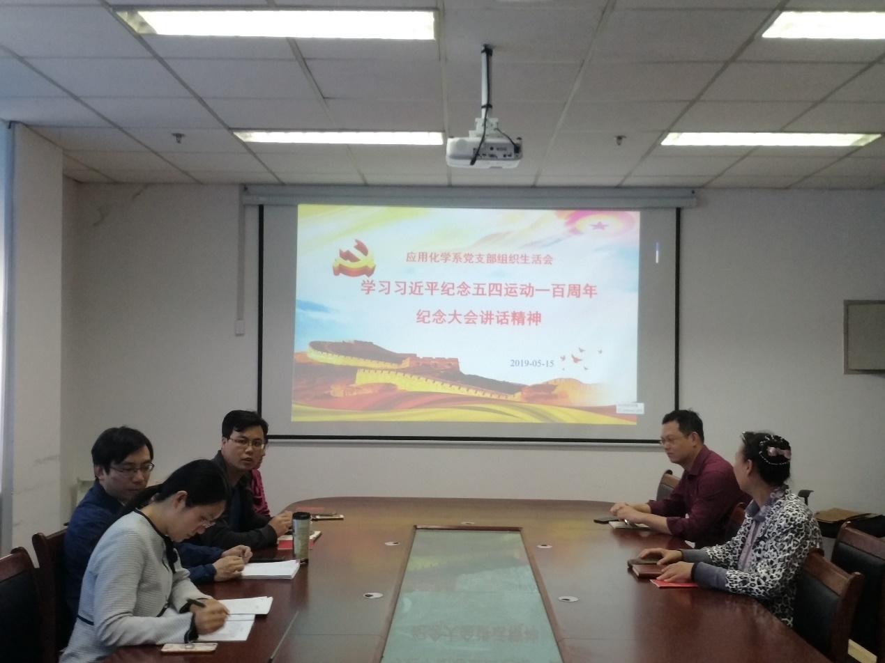 5月15日下午,应用威廉希尔官网党支部全体党员在工科楼A座629开展学习贯彻纪念五四运动100周年大会精神的活动。