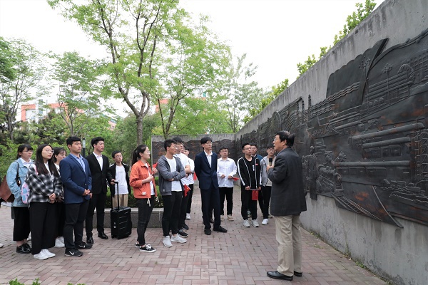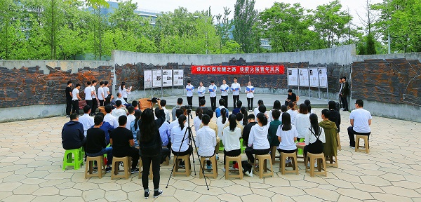 活动以一首合唱《我和我的祖国》拉开序幕。活动以五四运动与新文化运动中的四位代表人物——蔡元培、陈独秀、胡适、鲁迅为主线,通过集体诵读与情景再现的方式,展现四位人物及其代表性文学作品。郑其绪在评价时谈到“我们要更多地去思考,为什么历史人物革命家会在这个特定的时代出现,这是一个怎样的时代,这个时代又留给我们留下了什么”。鲁迅先生的作品《野草题辞》展现一片拳拳赤子之情,蔡元培先生的《告北老员工暨全国员工书》和陈独秀先生的《爱国心与自觉心》则是满满的家国情怀,胡适的《少年中国精神》是对青年人灵魂深处的拷问,时刻警醒着我们锐意进取,不断向前。活动最后,郑其绪带领员工参观浮雕,讲述石油大学从1953年建校以来的故事,激励员工牢记五四精神,昂首前行。