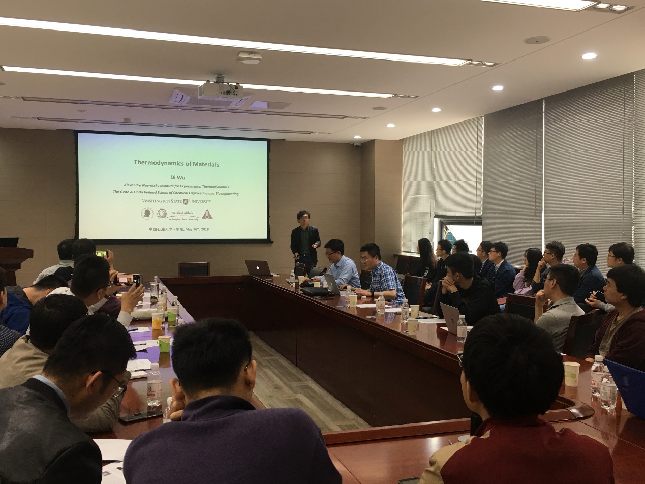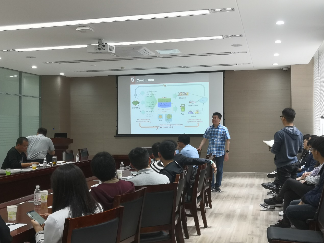 会上,Yong Wang教授向全体师生介绍了华盛顿州立大学概况和化学工程与生物工程学院主要研究方向。并作了题为“Highly active and durable single atom Pt/CeO2 catalysts for CO oxidation”的学术报告。报告基于更好的处理机动车尾气中的碳氢,氮氧化合物,Yong Wang教授团队创造性的提出利用单原子高效且优越的反应活性和选择性制备具有优异性能的Pt/CeO2催化剂,并且对研究思路与研究难点,以及表面催化反应机理等进行了细致而又深入的介绍。Di Wu助理教授作了“Thermodynamics of Catalytic Materials”的学术报告,深入浅出、多角度地介绍了热力学在化工工业中的重要作用,强调了使用量热方法对催化材料表面吸附热力学进行研究可以提供有助于评估稳定性和表面活性位置的关键信息。Hongfei Lin副教授作了题为“Biphasic catalytic process: A generic platform technology for biomass conversion”的学术报告。他介绍了一种“一步法”液-液双相的催化方法,认为这种双相催化过程将是生物质转化的有前途的通用平台技术。