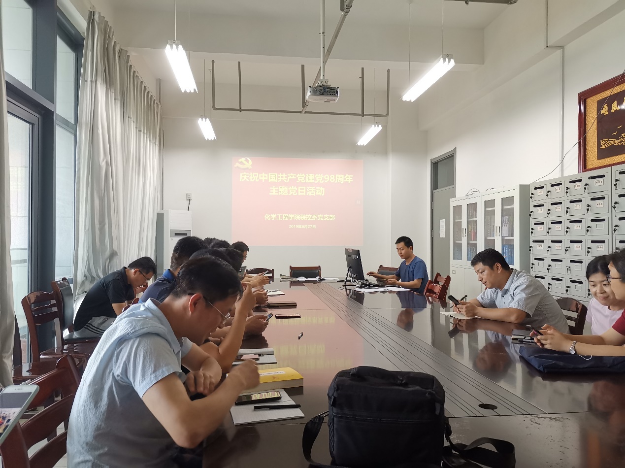 6月27日下午,装控系党支部在工科楼E411开展了庆祝中国共产党成立98周年主题党日活动,党日活动由支部书记左海强主持,微党课“明晰历史-坚持中国共产党领导”由值月党员王宗明主讲。
