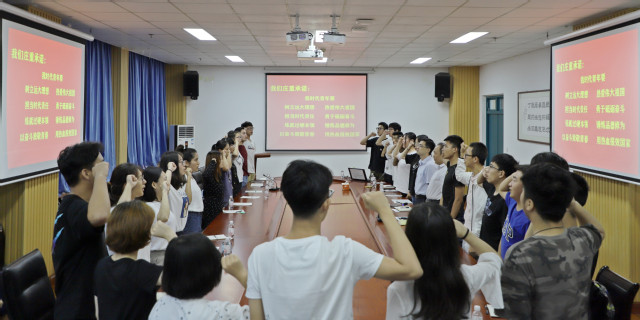 班会最后,全体同学庄重宣誓,用铿锵有力的声音作出新青年的承诺:“我时代青年,要树立远大理想、热爱伟大祖国、担当时代责任、勇于砥砺奋斗、练就过硬本领、锤炼品德修为,以奋斗致敬青春,用热血报效祖国!”