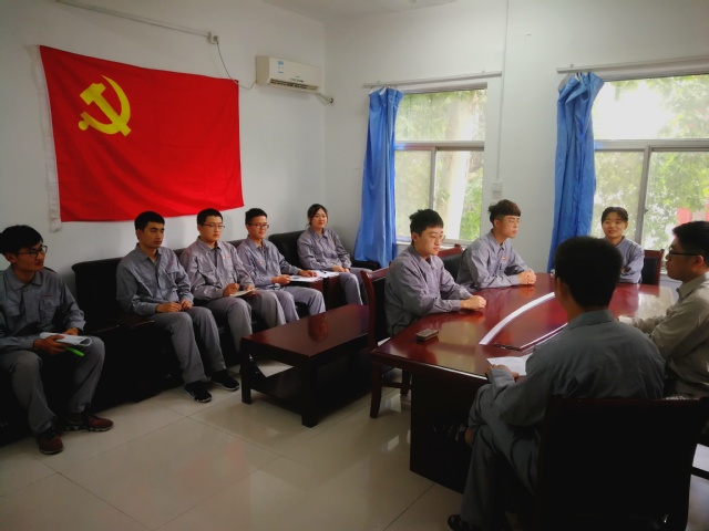 会议伊始,实习教师薄守石简单回顾了实习动员时化工系党支部书记丁传芹结合“不忘初心”和“建党98周年”主题为16级员工讲党课的基本情况,丁传芹希望员工能够在实习中进一步了解化工行业中的实际生产过程,达到将理论知识学以致用、融会贯通的目的,员工党员在此过程一定要发挥关键作用。