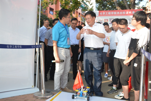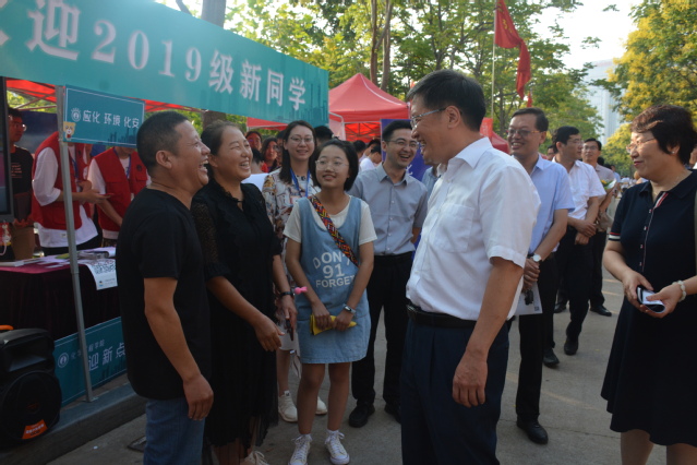 9月9日,威廉希尔官网党委书记王勇一行人来到新生报到点,与报道新生及新生家长热情交谈,了解新生情况,表达对新生的关怀,寄予美好期望。交谈过后,王书记一行人又观看了chem-e-car小车演示,并鼓励员工积极创新。