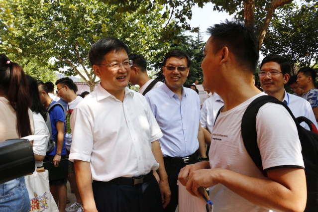 杨朝合经理、冯宝鹏书记到迎新现场了解新生报到情况