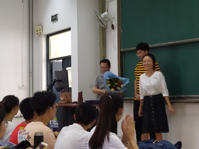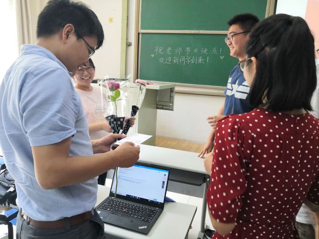 三尺讲台上,老师们孜孜不倦地向员工们传授着知识。化工安全专业1802班的授课老师朱海丰接过班长丁浩然和团支书王晴送出的花朵,十分欣慰的感慨:“这是我的节日啊,太谢谢大家了!”