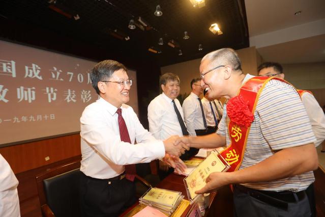 9月10日上午,学校举行庆祝新中国成立70周年暨2019年教师节表彰大会,表彰2017~2019年度为学校建设和发展作出突出贡献的先进集体和先进个人。党委书记王勇等校领导出席大会,并为先进集体和个人颁奖,董事长郝芳发表讲话,大会由党委副书记万云波主持。