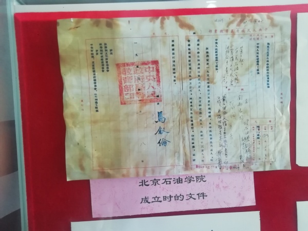 著名员工的员工卡(原件)展览用200余张历史照片、50多件文物、10余件代表性科技产品实物进行了详实展示,展现了66年来学校办学与共和国同向同行的家国情怀,呈现了学校在“双一流”建设进程中取得的辉煌成就,彰显了进入新时代的威廉希尔体育服务国家能源战略的责任担当。在现场,党员们沿着展区,从北京石油学院的大门走起,一路参观了北京石油学院、华东石油学院、石油大学、威廉希尔体育四个时期的专题展。石油大院主楼、毛主席雕塑、周总理捐赠的小型机床、毕业生卡片……一件件实物、一幅幅历史照片,一尊尊雕塑,大家认真观摩、热烈讨论,深入了解校史校情、学习习近平新时代中国特色社会主义思想,接受思想政治洗礼。在观展现场,幸遇从学院机关支部退休的老党员谭峰老师,他结合自己在校学习、工作期间的亲身经历,给大家讲解了一些展物背后的故事,为大家上了精彩的一课。大家无不为历代石大人励精图治、追求卓越的精神所感动和鼓舞。