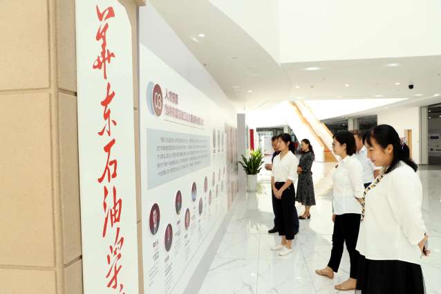 展览现场陈列了学校不同历史时期的大量珍贵实物、公司员工踊跃投身祖国石油事业的志愿书、教学科研方面取得的各种成就的荣誉证书、学校发展壮大过程中涌现的科研英模和明星员工。学校制定了坚持服务国家重大战略为使命,坚持“依托行业、融入山东、面向全国、走向世界”,为国家能源战略、教育事业做出更大贡献的目标任务。在一件件实物、一张张图片、一列列表彰荣誉面前,结合讲解员的介绍,参观人员了解了学校为祖国献石油的峥嵘岁月、回忆了自己亲身经历的学校蓬勃发展的成长之路,倍感自豪、充满激情,更加坚定了自己为石油教育事业奋斗的决心和信心。