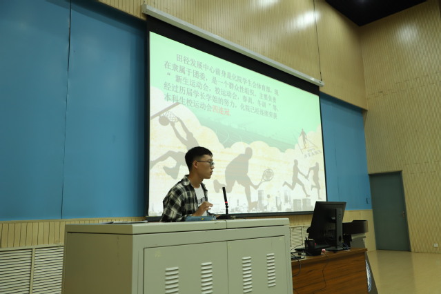 随后,学院员工会体育部主干成员向新生进行了运动会动员,结合视频展示,向大家介绍了学院体育部三跳、投掷、短跑、长跑四支队伍的情况,鼓励新生积极加入到体育运动以及青年健身节的活动中,强身健体,为学院贡献自己的力量。