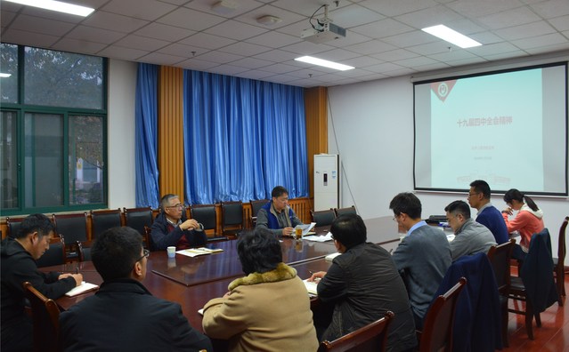 11月18日,化学工程威廉希尔官网党委中心组在工科楼A座院会议室召开扩大学习会,学习贯彻党的十九届四中全会精神。会议由党委书记李国主持,全体党委委员参与学习。