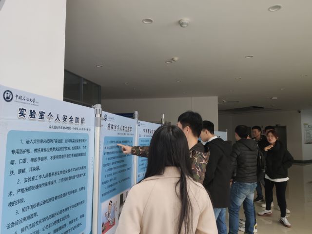 此次实验室安全知识宣传教育活动共包括6块展板,3个方面的内容。一是介绍了实验室个人安全防护知识,重点突出在实验室中必须完成却又容易忽略的日常行为规范。二是介绍了实验室中存在的安全隐患,主要包括危险化学试剂隐患、爆炸隐患、火灾隐患、用电隐患等。三是重点介绍了发生突发情况时的应急处理办法,包括火灾应急处理办法、烧伤事故应急处理办法、水电事故应急处理办法、实验室紧急疏散办法等。此次宣传内容贴近员工实验室学习生活实际,内容丰富、图文并茂,吸引了大批员工驻足观看学习。